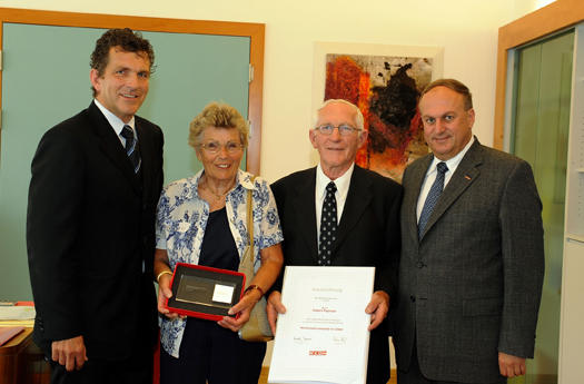 Ein schönes Geschenk bereitete WKOÖ-Präsident Dr. Rudolf Trauner Hubert Papinski an seinem 78. Geburtstag mit der Wirtschaftsmedaille in Silber.